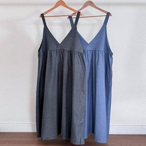 옷자락 / 여성 박시핏 레이어드 랩 나시 임부용 데님 롱 원피스
