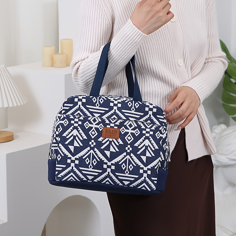 TEMU DLIU 대용량 꽃과 나비 디자인의 단열 점심 가방, 내구성 있는 나일론, 지퍼 잠금, 작업, 학교, 피크닉용 휴대용 - 식품 접촉 없음, 점심 가방 단열, 피크닉 필수품, 세련된 점심 가방, 안전한 지퍼 잠금