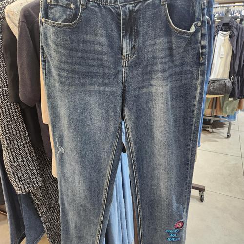 [다잇템_패션]여자 자수 세미배기핏 FW 워싱진 청바지