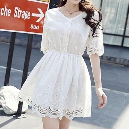 [엄지척]여성원피스 데이트룩 자수 하객룩원피스 반팔 펀칭 원_19913734_667501