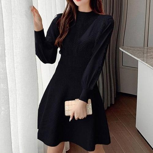 [엄지척]레이스 자수 골지 원피스 A스커트라인 볼륨소매_19911448_667501
