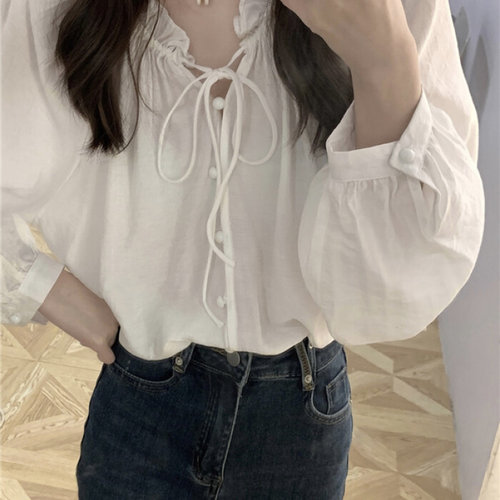 슈팅스타 / 넥 스트랩 스윗 레이스랜턴 슬리브 핏 블라우스