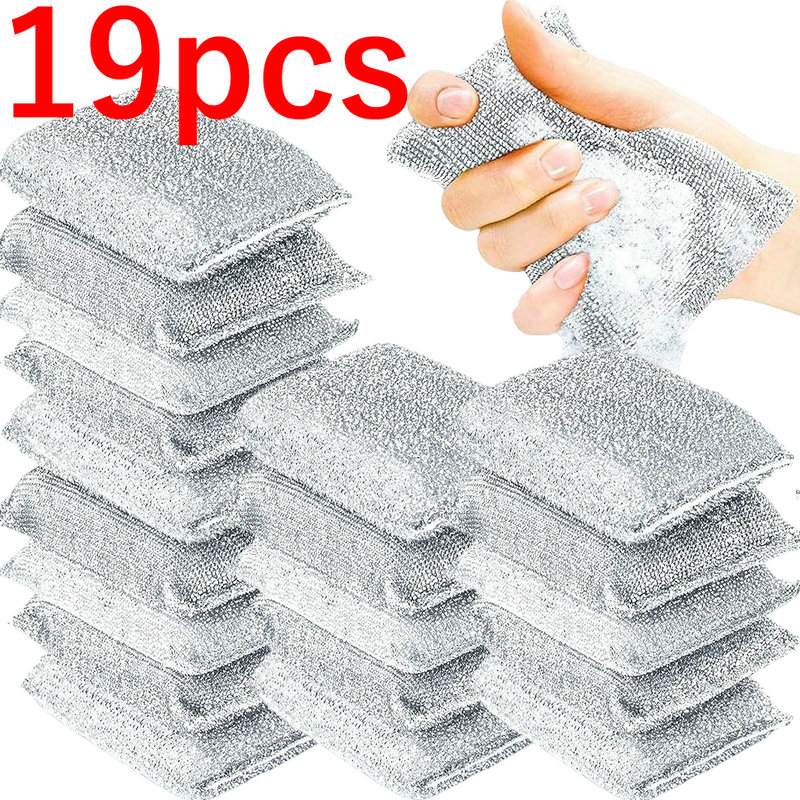 TEMU 대형 은색 매직 스틸 와이어 스펀지 수세미 패드 - 강력한 무균 주방 설거지 스펀지, 조리기구에 긁힘 방지, 스크래치 방지 냄비 브러쉬, 냄비용 비마모성 클리닝 패드, 내구성이 뛰어나고 오래 지속되는 사용