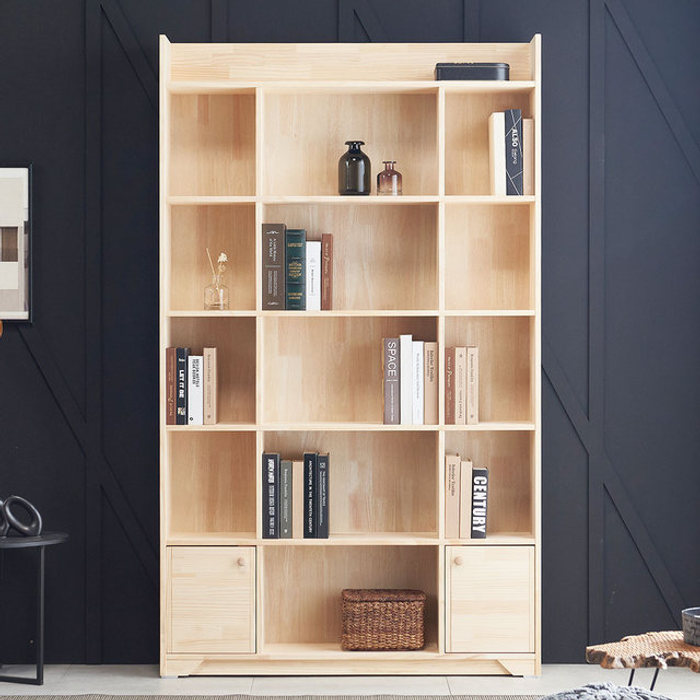 벨리카가구 프레즐 소나무 와이드 작은 낮은 가로 세로 원목 책장 6단