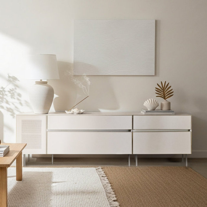 장인가구 [비밀특가] 장인가구 무와 E0등급 하이그로시 1800 거실장 세트(1200거실장,600서랍협탁)