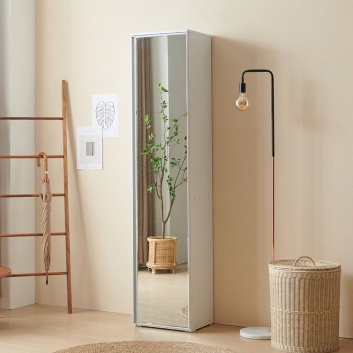 현관 입구 전신형 거울 키큰 틈새 신발장 (400 화이트)