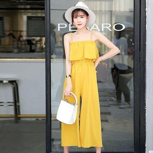 여성 쿨 린넨 뷔스티에 7부 민소매 멜빵 와이드 점프슈트