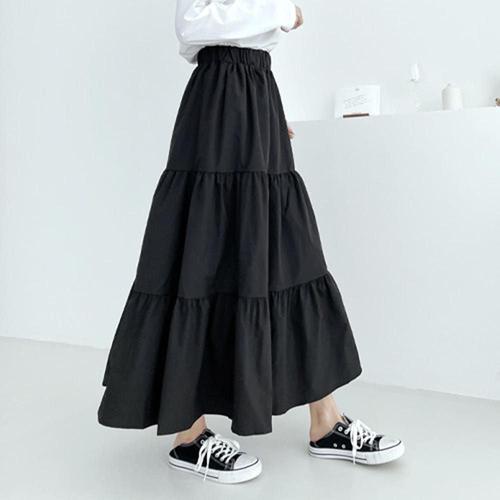 샵앤) 여성 밴딩 앞주름 정장 데일리 플리츠 롱 스커트 TH-U-WSK-20276-블랙