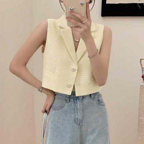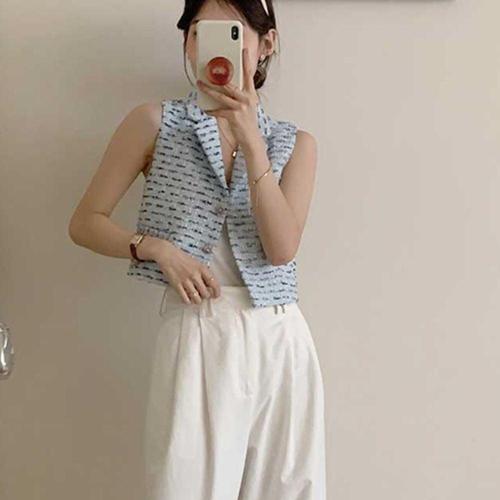 카라 크롭 정장 베스트 조끼 여름 민소매 WFLX6DW