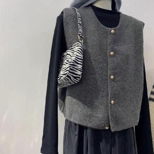 정장 출근룩 라우드넥 버튼 조끼 베스트 WFLX6E2