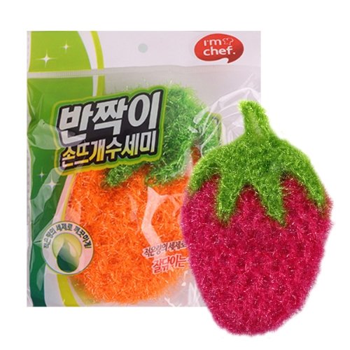 아크릴 딸기 수세미 주방 설거지용 개별포장
