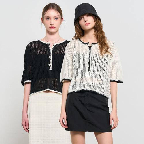 [제너럴아이디어]WOMAN 루즈핏 빈티지 네트 하프 니트 [2COL] / WBD2L05543