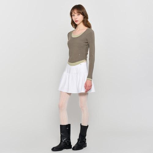 [제너럴아이디어]WOMAN 레이어드 리브드 롱 슬리브 니트 [LIGHT KHAKI] / WBD3L05513