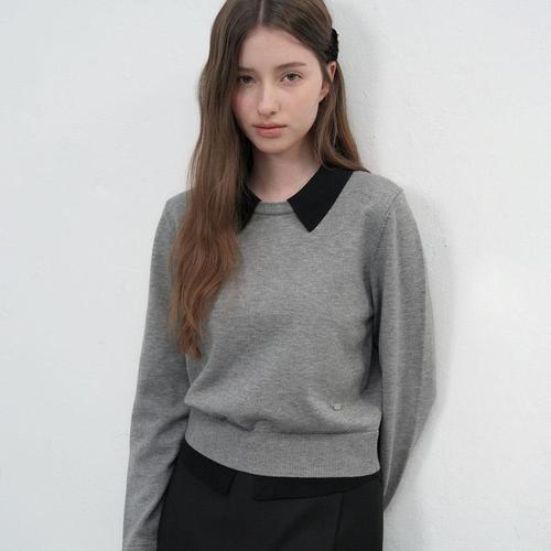 [제너럴아이디어]WOMAN 에센셜 카라 레이어드 풀오버 [GREY] / WBE3L05513