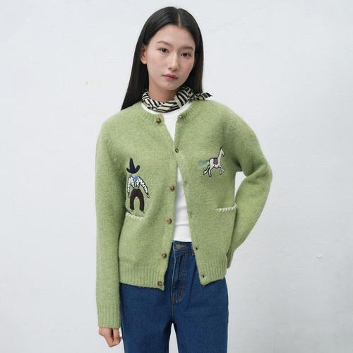 [제너럴아이디어]UNISEX 카우보이 크루넥 가디건 [LIME] / SBE4U04013-WOMAN