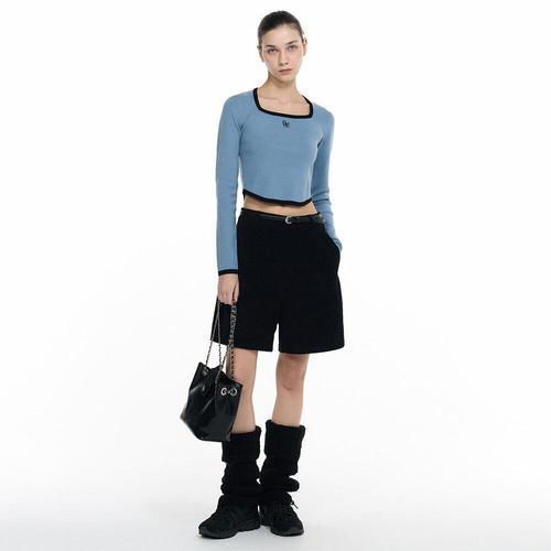 [제너럴아이디어]WOMAN 슈퍼파인 울 배색 스퀘어넥 풀오버 [BLUE] / WBD4L05551