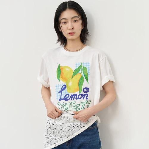 [제너럴아이디어]WOMAN 후르츠 루즈핏 반팔티 [WHITE LEMON] / WBE2L01537
