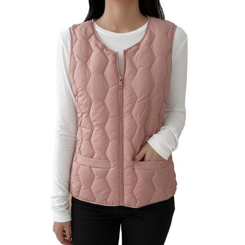 [제니유]벨린 여성 브이넥 경량 지퍼 패딩 허리텐션 조끼 빅사이즈