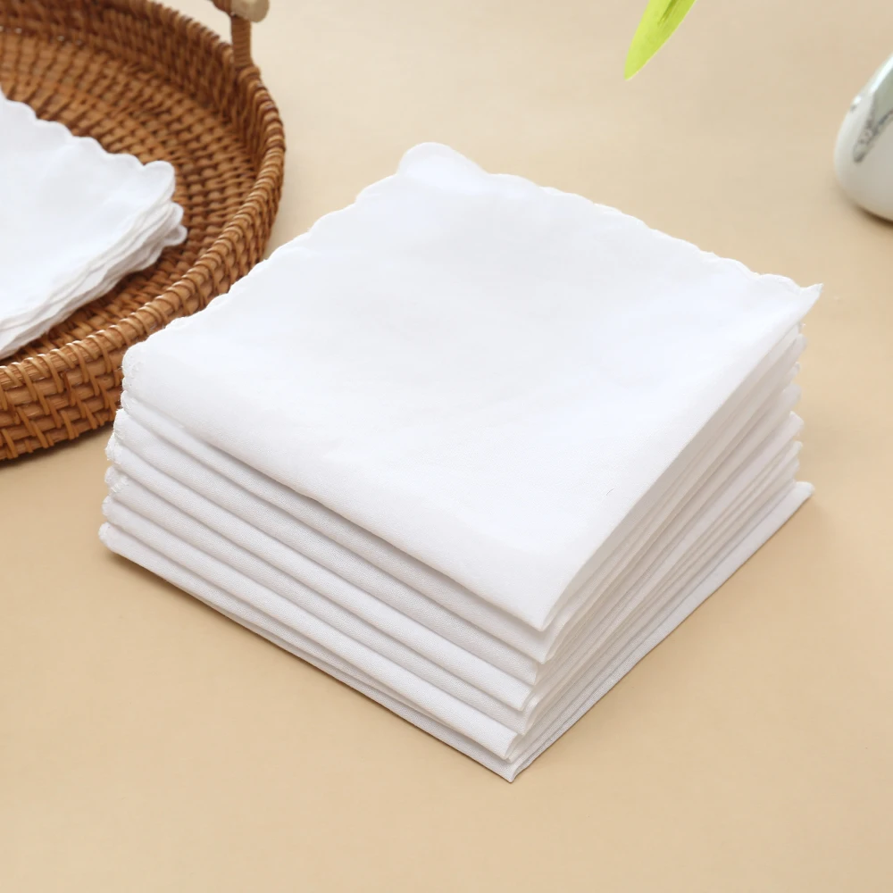 여성용 순면 흰색 천 자수 손수건, 홈 장식, 웨딩 용품, 얇은 노래, 10.8 인치, 28cm