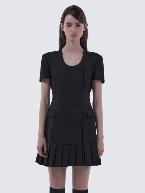 [마우솔레움] 젠 라운드 넥 플리티드 하프슬리브 수트자켓 드레스 - 블랙