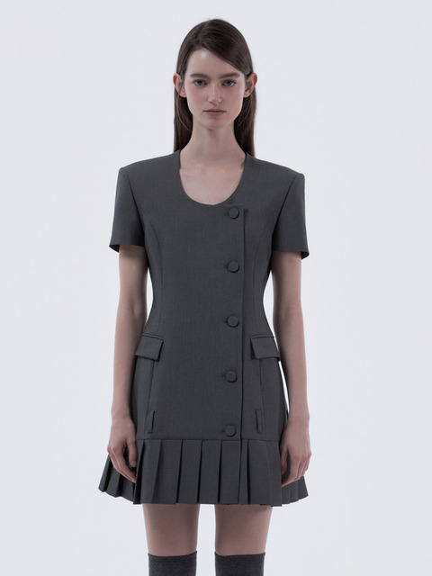 [마우솔레움] 젠 라운드 넥 플리티드 하프슬리브 수트자켓 드레스 - 그레이