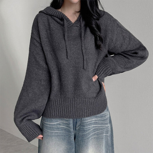 코키코키 / 젤라또 밑단 언발란스 슬릿 루즈핏 후드 니트