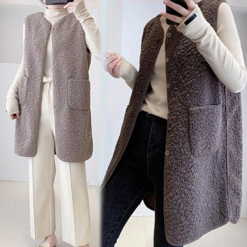 [홀리지]로브리 플리스 뽀글이 롱베스트 롱조끼