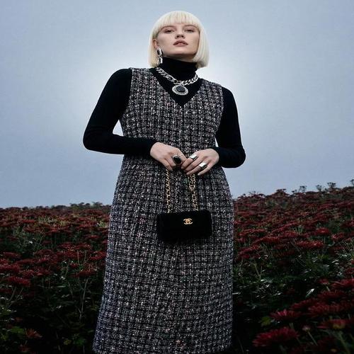[휴드]리엘스 브이넥 트위드 조끼 원피스
