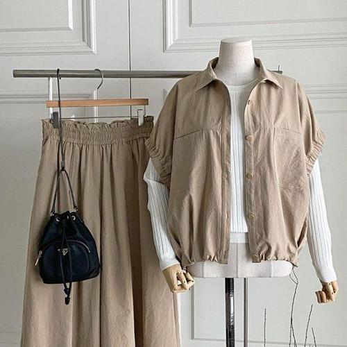 [신상오픈런]여성용 루즈핏 캡소매 핀턱 셔링 블라우스 조끼