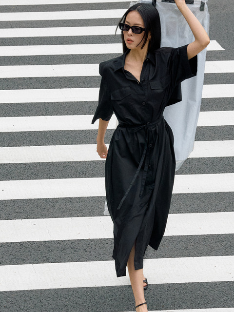 [구테] 조지아 컷아웃 셔츠 원피스_블랙