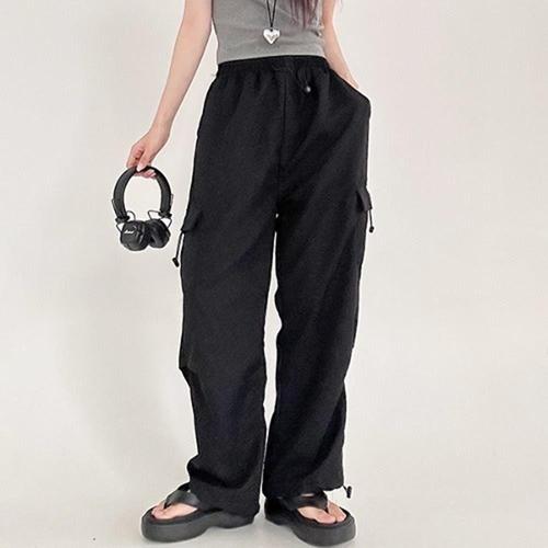 배기바지 면바지 코디 여성바지 밴딩 긴바지 일자 면 WFKXXC4