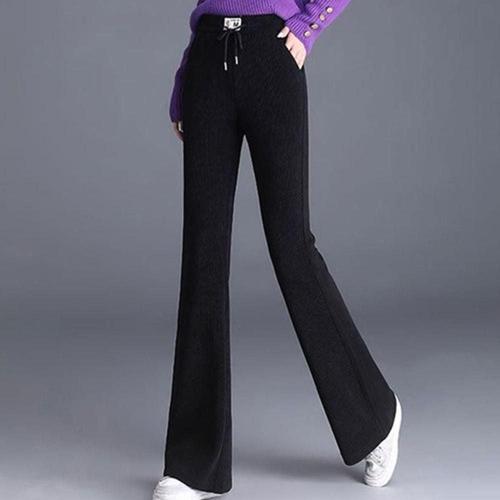 봉숙이 스타일 2025 겨울 기모 신상 따뜻한 여성 스판 허리 밴딩 여자 배기 면 고무줄 팬츠 블랙 검정 색 베기 9부 긴 바지
