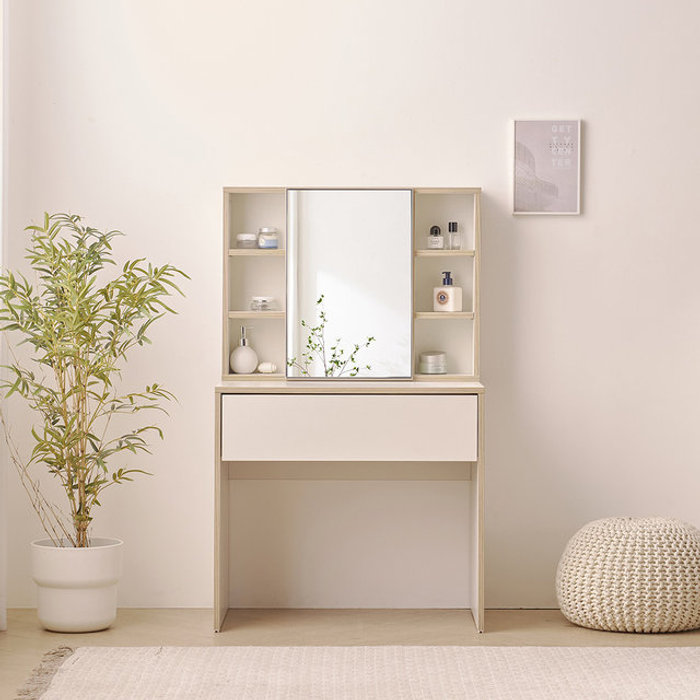 북유럽 심플 좌식 거울 화장대(80cm) 틈색 낮은 서랍형 주니어 셋트 멀티수납 큰