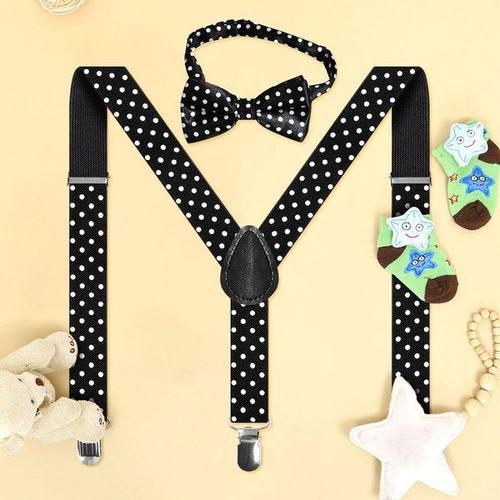 [에이치플러스몰]땡땡이 어린이 멜빵 블랙 주니어멜빵 아동멜빵 유아멜