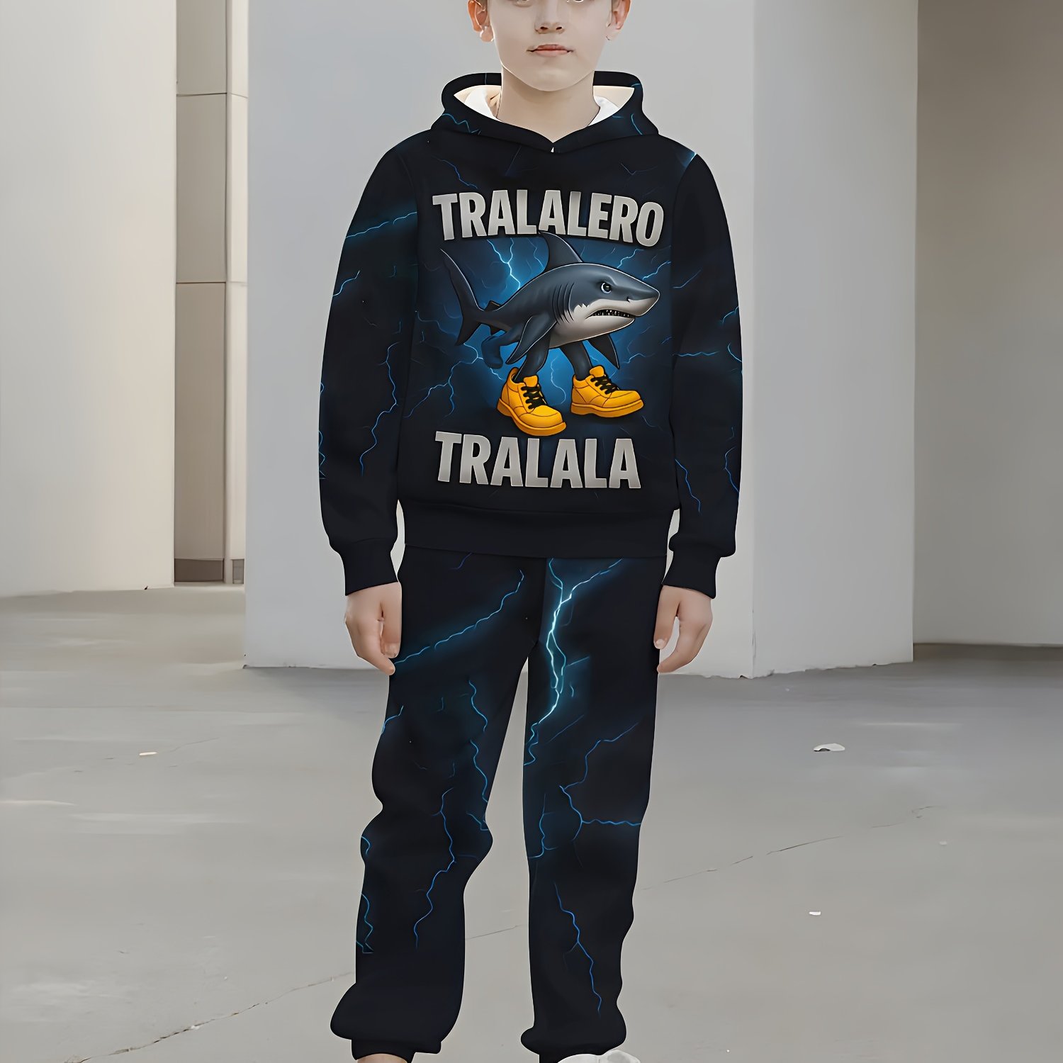 TEMU 소년용 3D 상어 프린트 후드 트랙수트 | 봄과 가을 개학 시즌에 완벽한 일반 트랙수트 세트 - 13세 이하 어린이를 위한 후드티와 캐주얼 팬츠 세트, 야외 활동에 적합, 스웨트셔츠와 스웨트팬츠, 야외 활동에 완벽