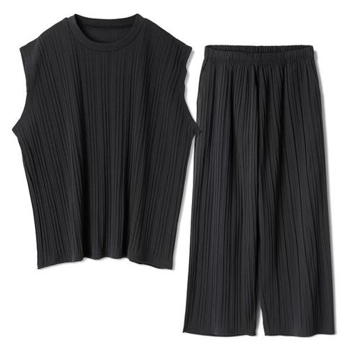 [오노마] ONM 여성 여름 패션 전체 주름 라운드넥 나시 바지 세트