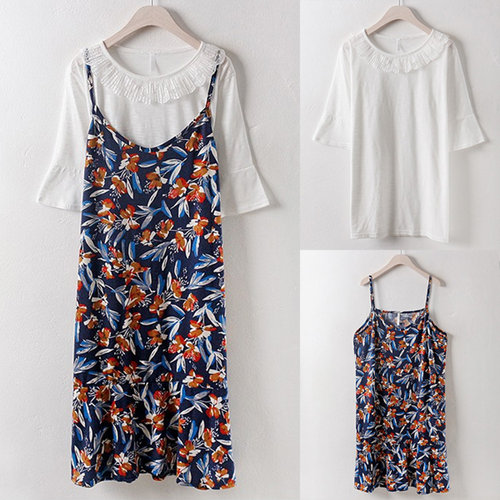 [셀러허브_여성트랜드패션]빅사이즈 여성 주름레이스티 나시원피스 세트 H213269