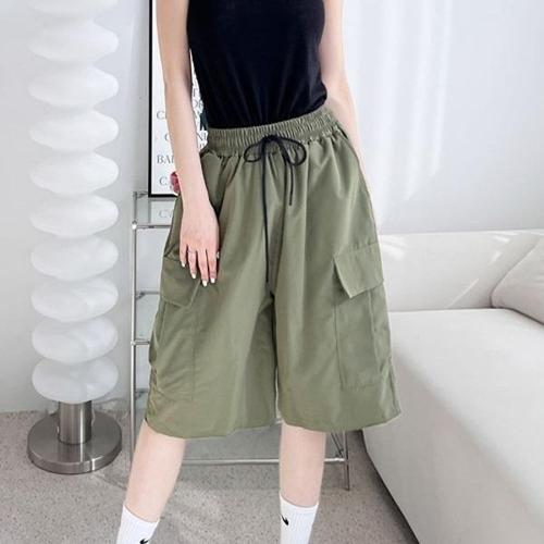 [엄지척]여자 캐주얼 카고 반바지 허리 핀턱 주름 오버핏 바지_20137877_667501