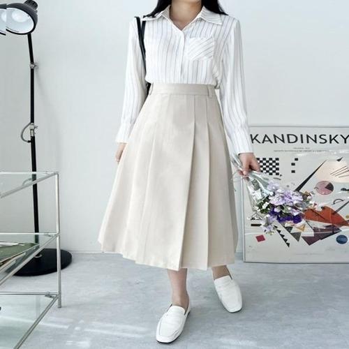 [드리다]봄 가을 클래식 플리츠 미디 롱 주름 벨트 셋트 치마 스커트 캐주얼 모임 출근