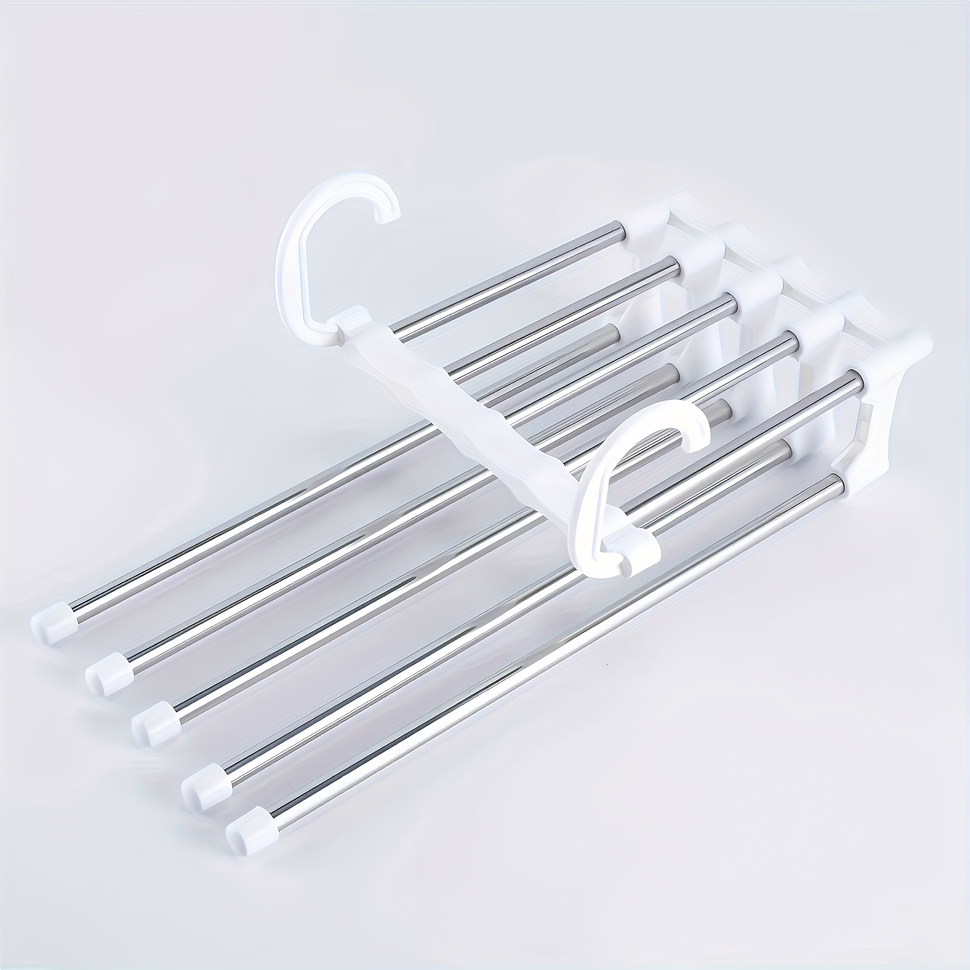TEMU 공간절약형 9단 금속 바지걸이, 미끄럼방지 코팅, 5개 후크 포함, 스테인리스 스틸 디자인, 80% 정리 효과, 슬림핏 청바지와 데님 소재에 이상적