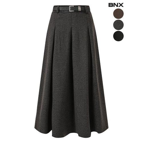 [BNX]여성 플리츠 주름 벨트 롱스커트
