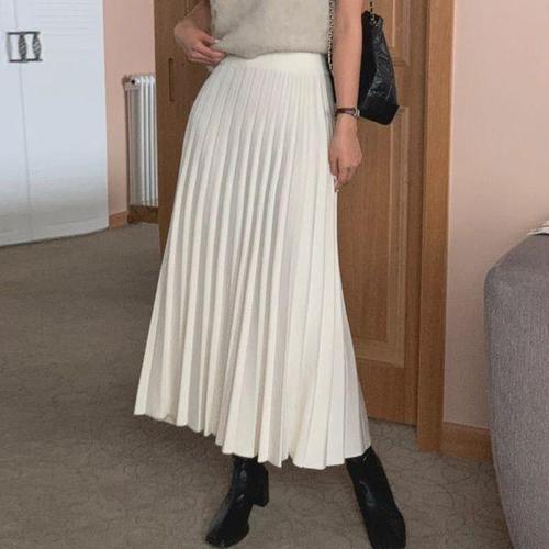 [스타일나]여자 봄 가을 겨울 밴딩 기계주름 플리츠 슬림 니트 롱 스커트 핏이 예쁜 간절기 고무 치마