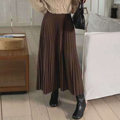 [유야]플리츠 밴딩 니트 롱스커트 주름 치마 -SK0051H- 여성 가을 겨울