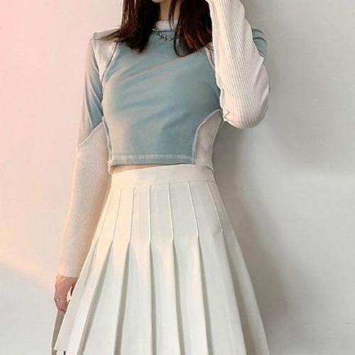 [에이치플러스몰]밴드라인 주름 플리츠 테니스 롱스커트 스타일미니스커트