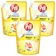 프릴 시크릿오브 베이킹소다 주방세제 퓨어레몬향 리필, 1L, 3개