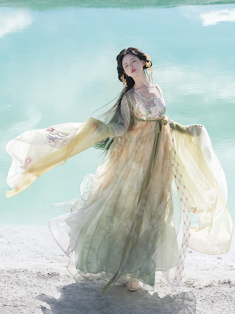 고풍 한복녀 위진 중국 전통의상 여성 자수 무대의상 원피스 사진 촬영