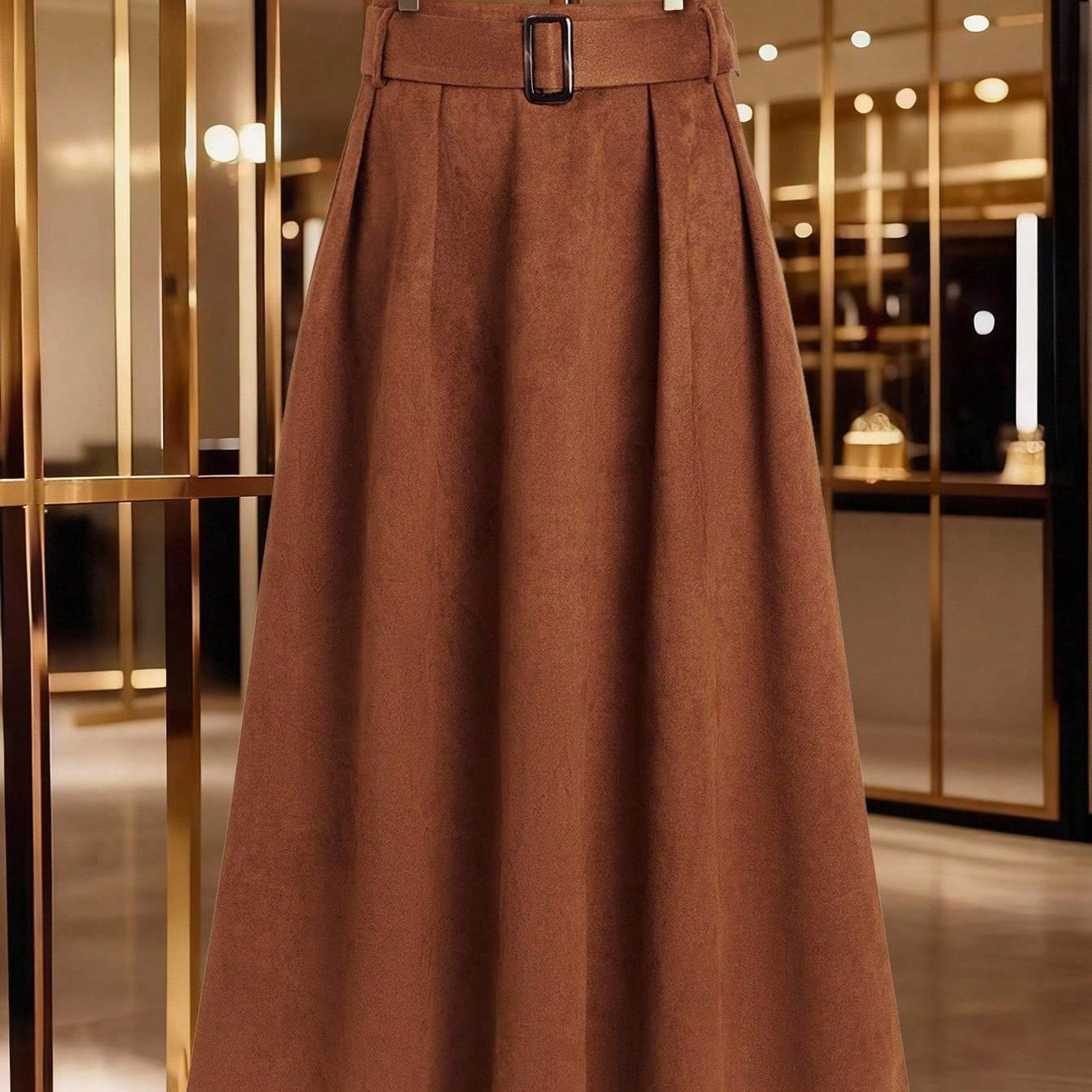 TEMU 여성용 하이웨이스트 A라인 미디 스커트 - -옐로우(브라운) 조절 가능한 허리, 구조화된 롱 스커트, 캐주얼 & 포멀 웨어, 핏, 주름 방지, 세탁기 사용 가능 - 다용도 가을 아웃핏