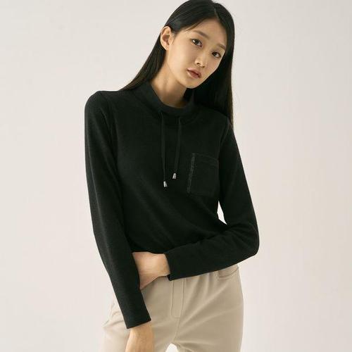 [지센] 메탈 하이넥 스트링 티셔츠 LCTSNA25_BK