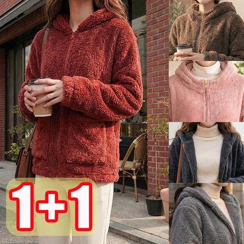 TEMU 플러스 사이즈, 후드 스웨트셔츠 따뜻한 플러시 코트 오버사이즈 자켓