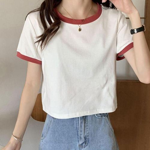 여자반팔티 배색 여자흰티 여성티셔츠 여자반팔면 WFKPDAT